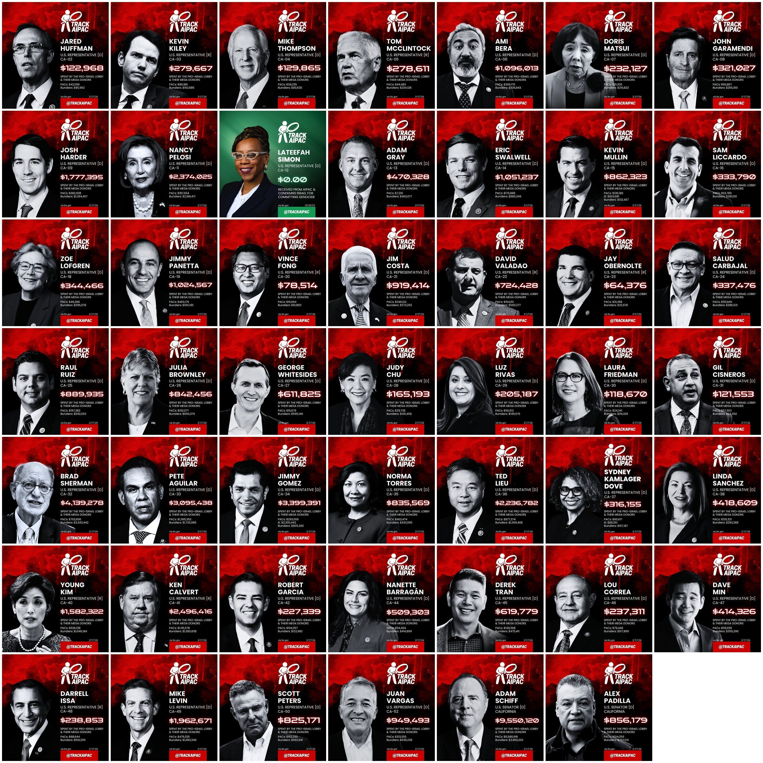 Both Senators and almost every single representative from California have taken money from AIPAC!