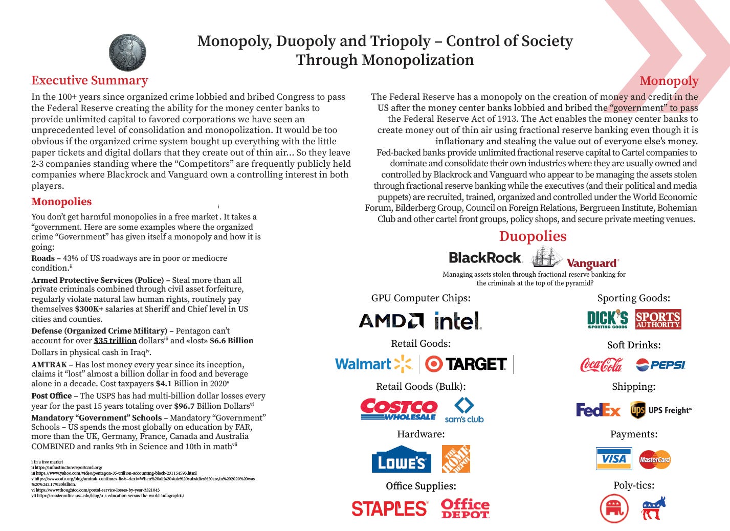 And that’s really what we’ve got right now is that they’ve been providing these cartel companies unlimited dollars, and those cartel companies have been buying up family businesses and mom and pop businesses and every kind of business to create a system where they can exercise control through BlackRock and Vanguard and State Street and these large private equity companies that are holding and you know that the ownership of the companies bought up with fractional reserve dollars and providing management to them and controlling the you know, who’s sitting in the C suite and who’s sitting in the CEO position.