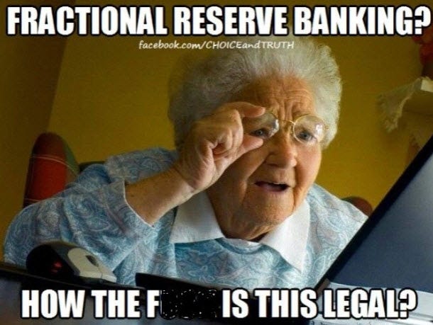 It’s a form of economic warfare against the population, and they don’t want the population to have independent wealth. They don’t want people to be independent. They want them dependent upon either the government or the corporations that have been monopolized by the fractional reserve system. And so the, you know, just one more analogy that I like to use about fractional reserve banking, you know, imagine if I have a dollar and you dear, you know, viewer or listener have a dollar and those two dollars, the only dollars in the world.