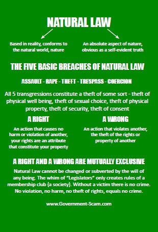 Essentially, it’s codified into almost every civilization out there has some version of the golden rule. And so in natural law, there are five, depending on who you ask, there’s five to seven things that are wrongs. Stealing is obviously wrong. Rape is wrong. Murder is wrong. Theft is wrong. And all of these, by the way, are thefts. So murder is the theft of life. Rape is the theft of sexual choice. Theft is theft. You know, trespass is theft. theft of safety in your lair. And so these things are obviously wrong because there’s a victim. And so the other side of that coin is anything that is not a wrong is your right. And so if you’re not hurting somebody else in the world, you have the right to do whatever you want to do as long as you’re not hurting anybody else.