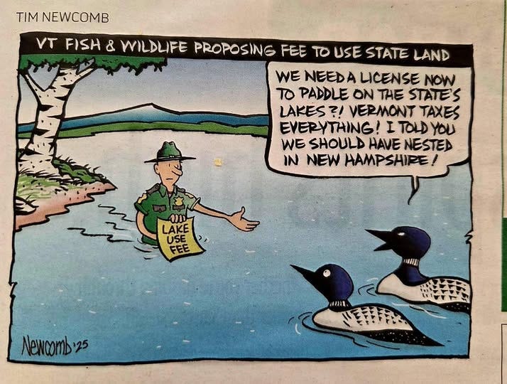 Vermont Begins Taxing Lake Use, Vermont Political Cartoonists Begin Promoting New Hampshire!
