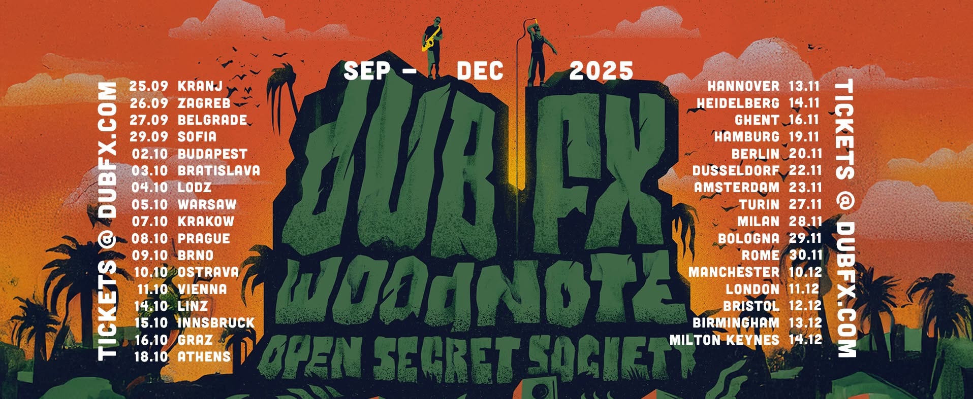 DubFX, Woodnote, and Grant “Prezence” Ellman are going to be touring Europe Sept-December. Get all the details on the new tour, the new album: Open Secret Society (see below), and why DuFX i boycottingSPOTFY: http://dbfx.com