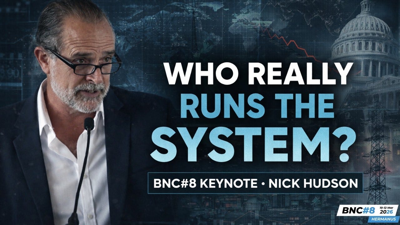 Nick Hudson delivers a controversial keynote linking state expansion, global finance and political power, arguing that the true drivers of today’s system operate far beyond public view.