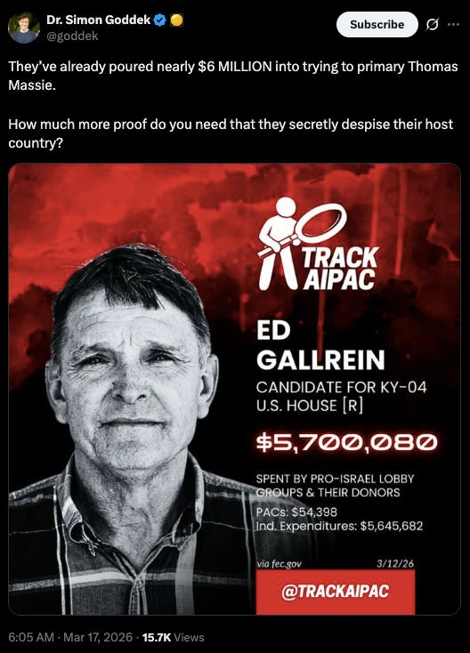 My only thoughts are this war against Iran is a war against the American people being waged by the organized crime “government” against the people. It obviously isn’t in our interests to be jacking up the price we pay at the pump, driving up the debt, depleting our high-dollar munitions, and shutting off the nitrogen fertilizer to our farmers. It is a form of economic warfare against a population that is rapidly waking up to the illegitimacy and criminality of the “government.” They are bankrupting farmers and independent wealth while enriching the banks and Beltway Bandit-class.