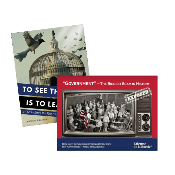 “Government” – The Biggest Scam in History… Exposed! & To See the Cage is to Leave It- 25 Techniques the Few use to Control the Many by Etienne de la Boetie2 in ePub and PDF, The Most Dangerous Superstition by Larken Rose, War is a Racket by Maj General Smedley Butler USMC, For a New Liberty – The Libertarian Manifesto by Murray Rothbard, Wall Street and the Bolshevik Revolution (Bankers paid for the Bolshevik Revolution to test “government” 2.0… “government” without private property, guns, rights, etc.) by Antony Sutton